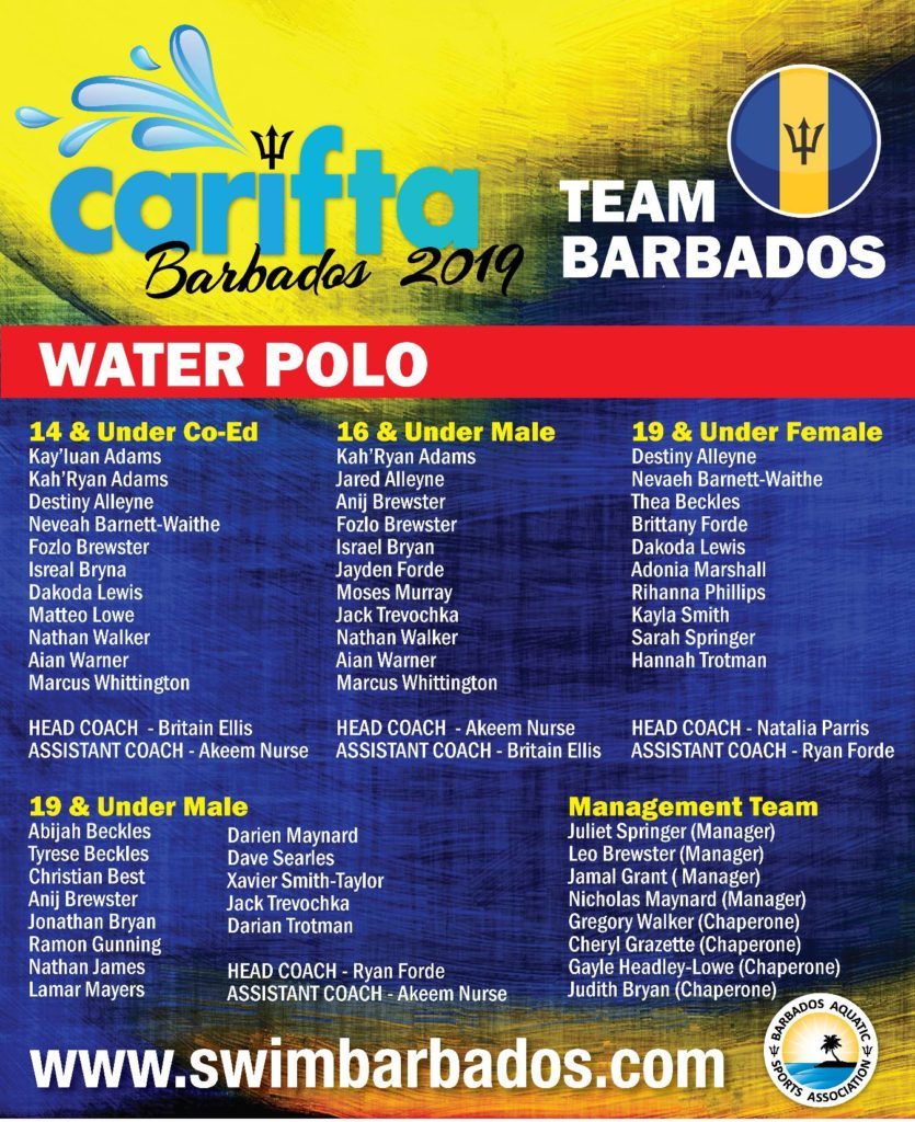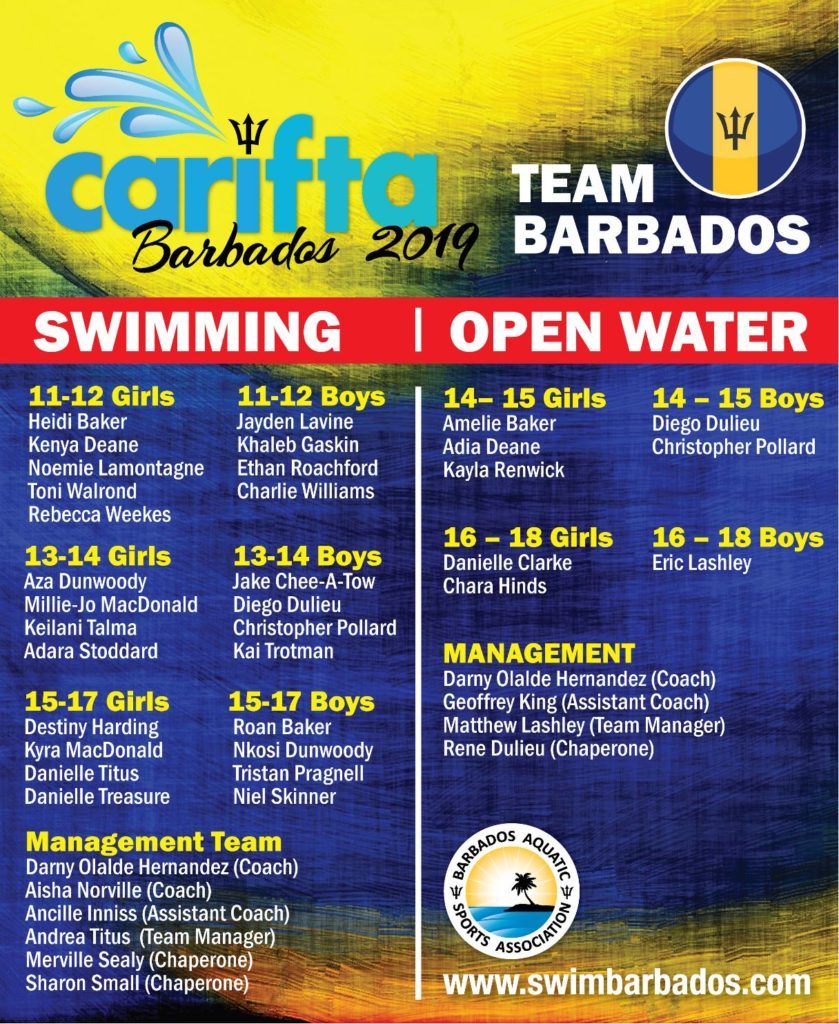 The Barbados Amateur Swimming Association is proud to announce our National Swimming Team for the upcoming CCCAN Swimming Championships, to be held in the Aruba June 29th – July 06th, 2018.